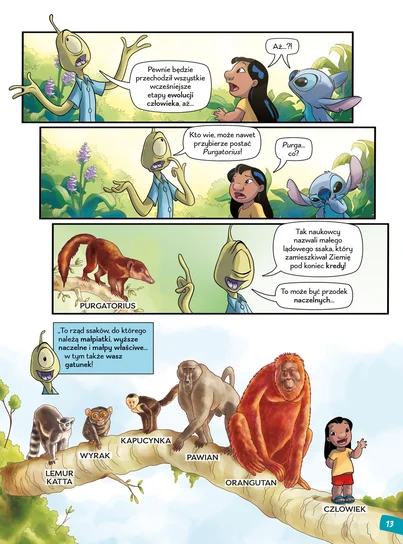 Jak już najpewniej wiecie, seria „Nauka z komiksem” jest jedną z często czytanych w moim domu serii. Sprytnie przemyca się w niej ogrom wiedzy. W zależności od podserii wiadomości przekazują inni bohaterowie Disneya. W przypadku tytułu „Ewolucja człowieka” z podserii „Genetyka i ewolucja” są to Lilo i Stitch.