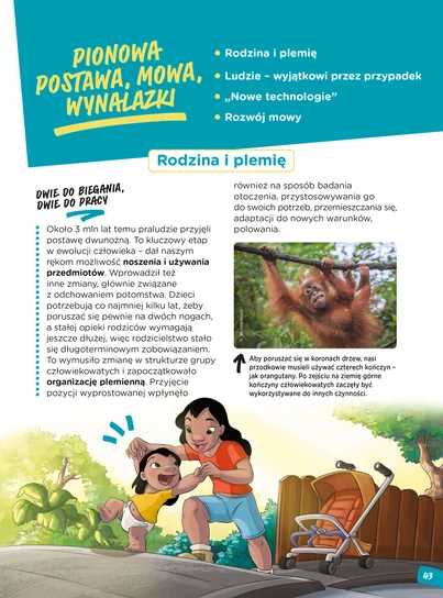 Dzieci uwielbiają disnejowskich bohaterów, więc z przyjemnością oglądają książki, w których się pojawiają. Rodzice natomiast chcą, żeby najmłodsi nieustannie się rozwijali. „Nauka z komiksem” jest więc swego rodzaju kompromisem pomiędzy oczekiwaniami dorosłych i dzieci. Książki są bardzo kolorowe i przyjemne w odbiorze, a równocześnie można się z nich dużo nauczyć. Czego spodziewać się po tytule „Ewolucja człowieka”?