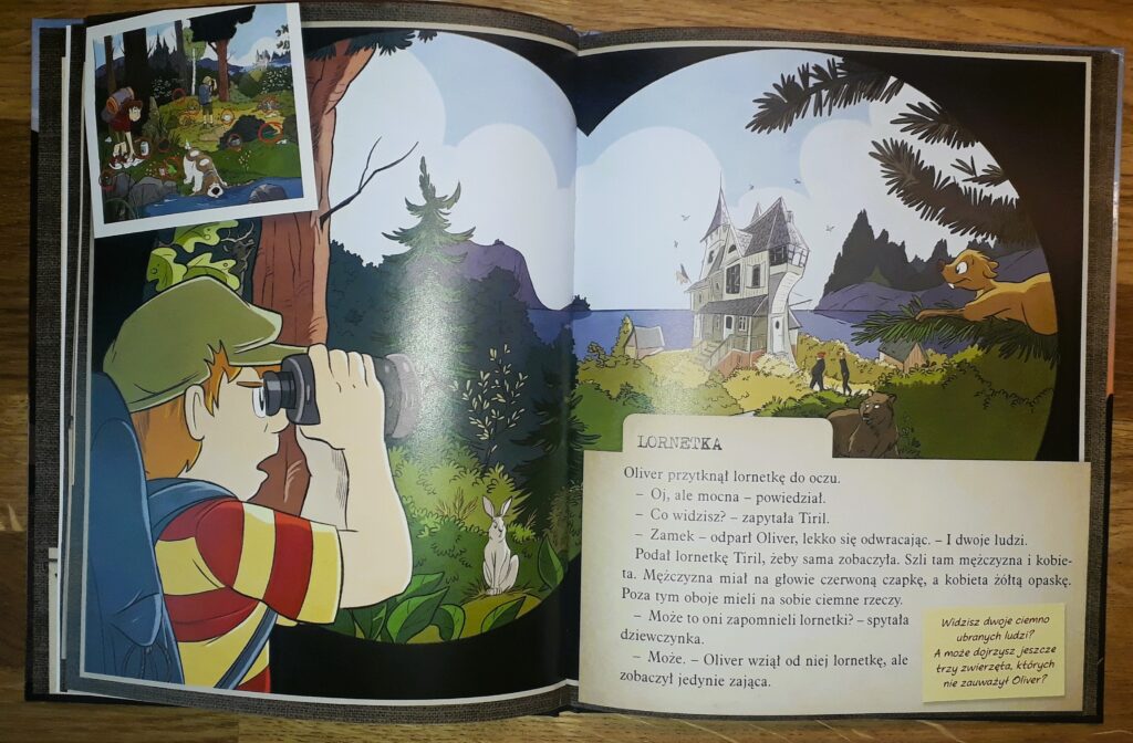 Tiril i Oliver planują rozbić w lesie obóz. Obserwują przy tym stary zamek, właściwie nie zamek a dwór, który swoje określenie zawdzięcza wielkości. Od dawna rudera jest pusta, a przynajmniej tak się wydaje, dopóki w nocy dzieci nie widzą sygnałów świetlnych z jednego z okien. Za dnia postanawiają to sprawdzić. W okolicy zamku widzą dwójkę ludzi, a po wejściu do środka znajdują kolejne dowody, że dzieje się coś nielegalnego.